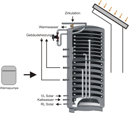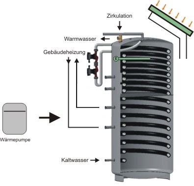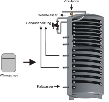 Multifunktionsspeicher.mit.Trinkwasserladesystem, Einsatz Wärmepumpenbetrieb